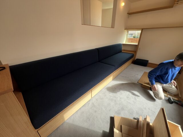 1日目は東京、そして神奈川(2か所)へ造作ソファに椅子にサイドテーブルをお届け。